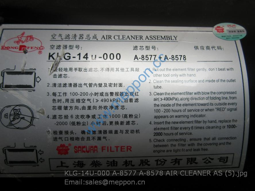 KLG-14U-000 A-8577 A-8578 AIR CLEANER AS