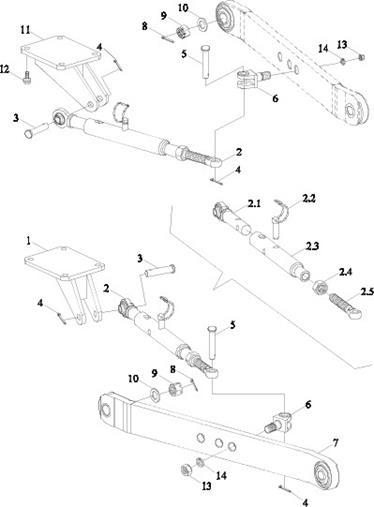 UPPER PULL ROD REAR ADJUSTING SCREW EXTRU- SION ASSEMBLY |