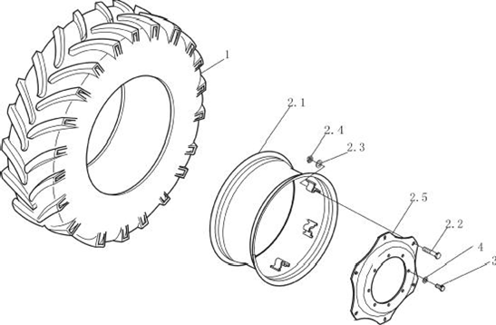 轮辋焊合件(W10-24)轮辋和辐板螺栓 M16×1.5×125 辐板垫圈 16.6×33×3.5 螺母 M16×1.5 驱动轮辐板 螺母 M18×1.5 垫圈 |